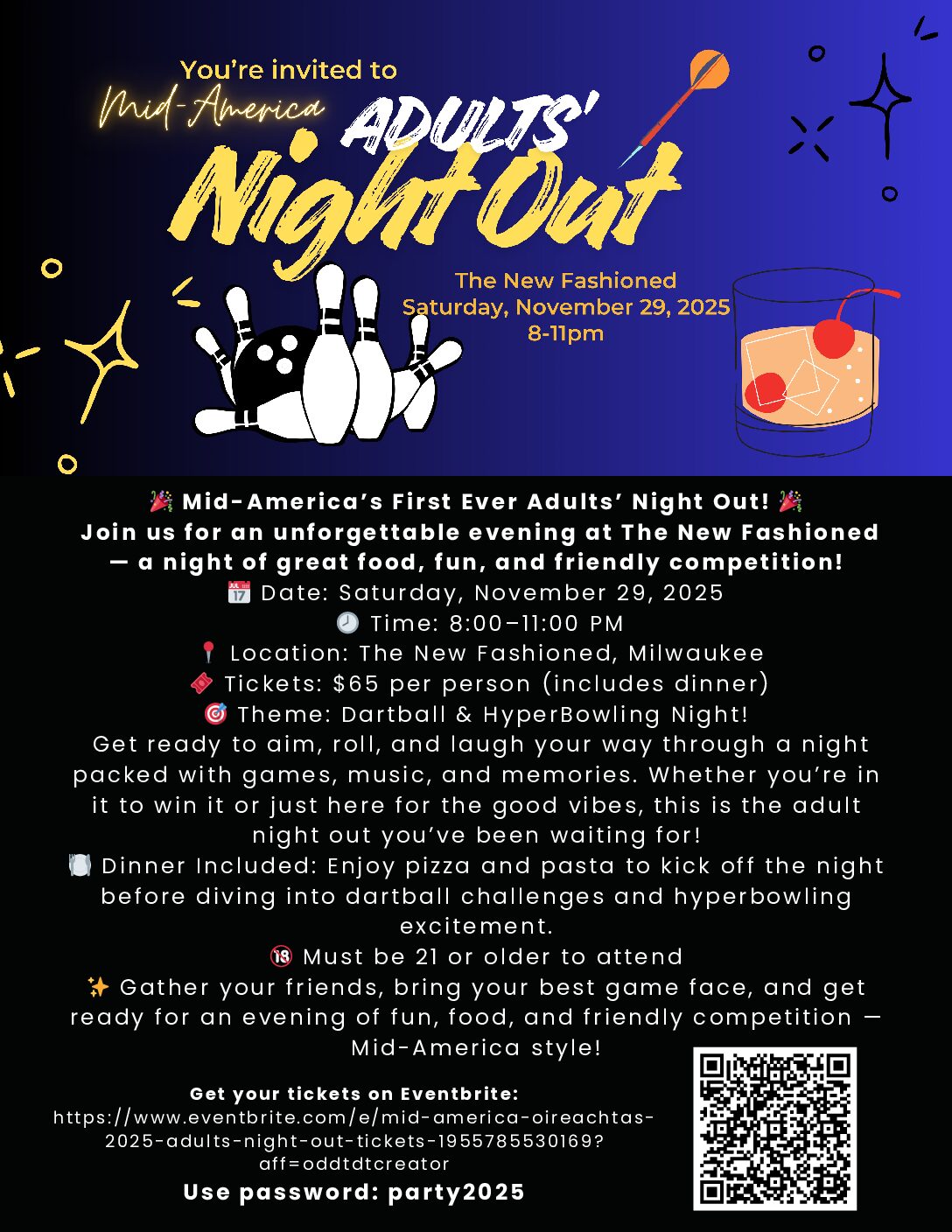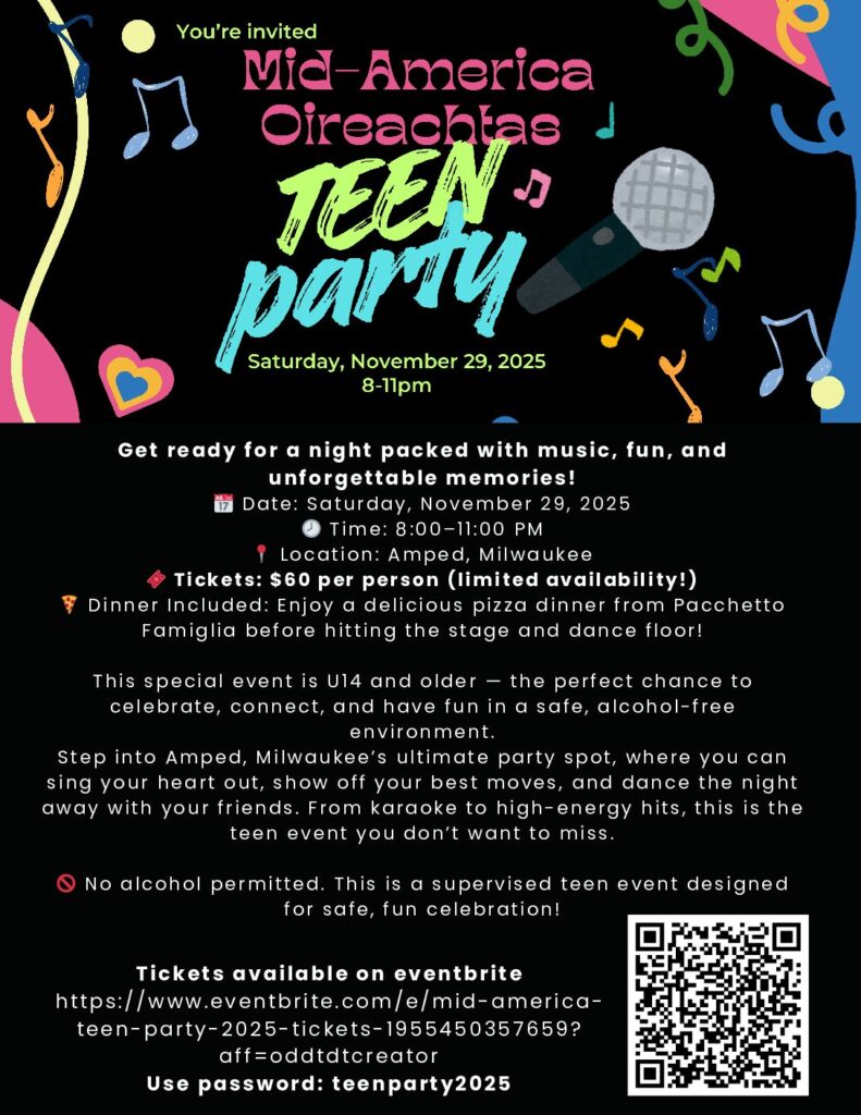 Adult Party on Saturday night at The New Fashioned – a Milwaukee bar that features hyper bowling, darts, and curling. Open to adults over the age of 21 (note: this can mean adult dancers competing at the Oireachtas OR just moms & dads of dancers. Any adult affiliated with our event that would like a fun social atmosphere will be able to buy tickets.) More information on this party to follow.